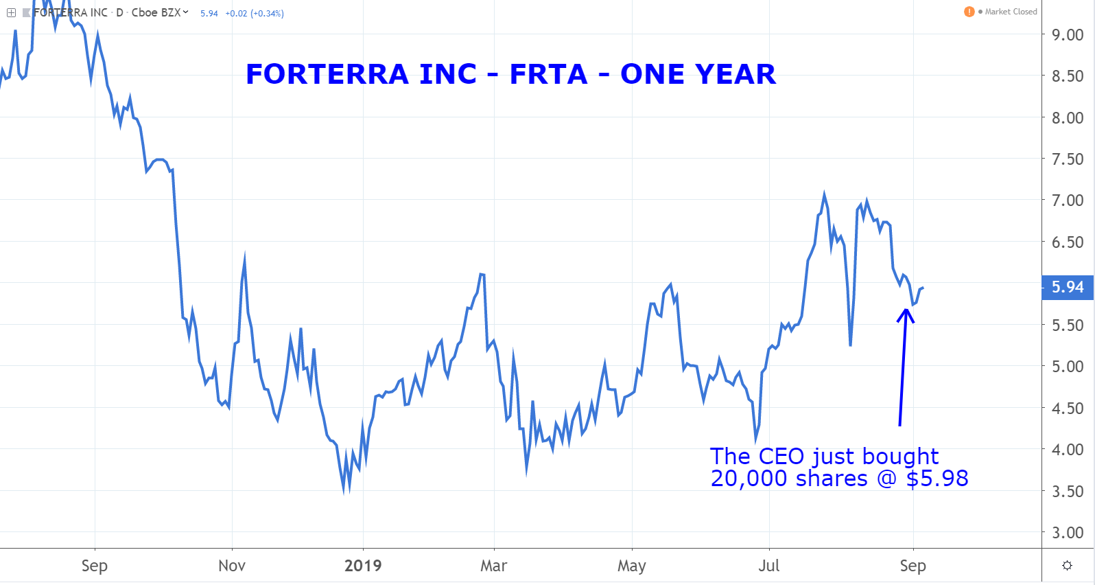 Finally, pipe manufacturer Forterra lost 15.5% of its value on Monday, bringing the six-day rout to 54%. Don’t look for a specific reason FRTA sold off again today, however. Rather, Monday’s weakness was just an extension the selloff that got rolling last week.