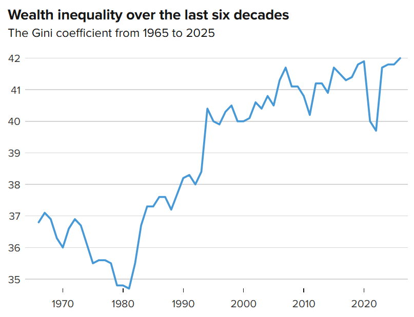 At the start of this year, I predicted that 2026 would bring a wave of controversial tax proposals aimed at investment wealth. Well, with this latest Gini data showing wealth concentration at 60-year highs, I feel confident about my call.