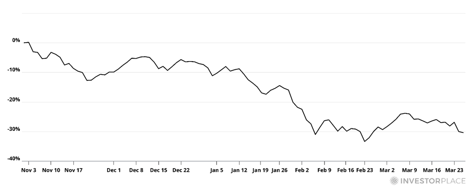 Since late October, the iShares Expanded Tech-Software Sector ETF (IGV) has fallen 30%.