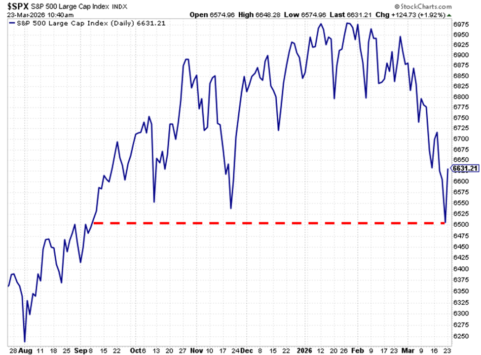 As you can see below, on Friday, the S&P 500 hit a new six-month low at 6,515.