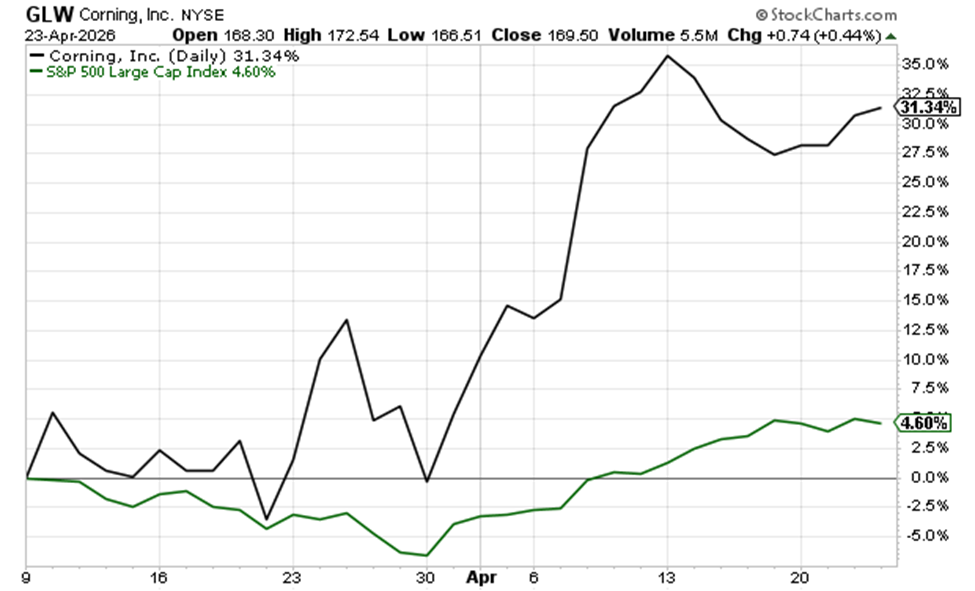 As the market has been meandering close to even since the beginning of Operation Epic Fury, GLW has risen 31% since Luke’s recommendation.
