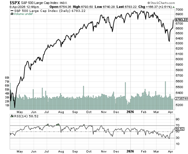 As you can see below, the stock traded sideways during Operation Epic Fury but has since resumed its climb. Meanwhile, the S&P 500 is still in negative territory, as you can see in the chart below (even if AI can’t).