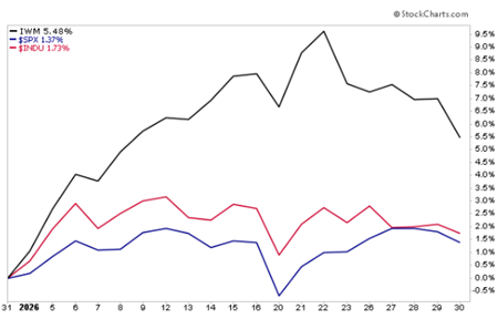 In January, small-cap stocks moved decisively higher. The Russell 2000 surged 7% for the month, far outpacing the S&P 500’s 1.4% gain and the Dow Jones Industrial Average’s 1.6% rise.