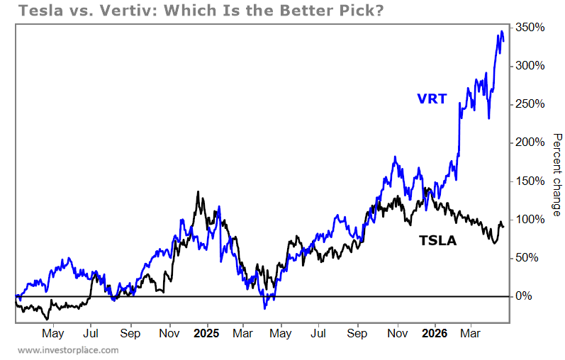 Vertiv Holdings, by comparison, is far smaller, with a market cap of roughly $115 billion – just a fraction of Tesla’s size. It doesn’t receive the same level of attention, but it plays a critical role in powering the on which that AI depends.