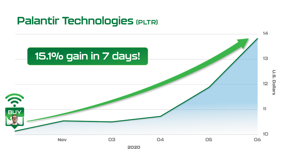 Every time Palantir had gone down at least three days in a row… its daily price swings were shrinking… and at least 5,000 U.S. hospitals were accepting new patients… the stock was on the verge of a major jump.