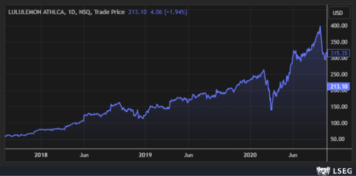 The same was true for Lululemon Athletica Inc. (LULU) during the late 2010s. The Vancouver-based company turned yoga pants into a wardrobe staple. Here’s what shares did starting in 2017…