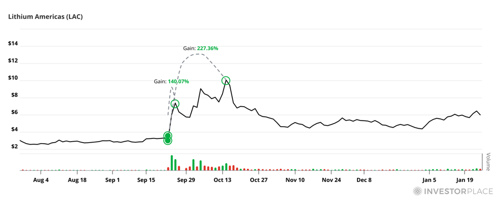 Then there’s LAC stock, which saw a surge of 140% a mere day after reports emerged that the Trump administration was seeking a 10% stake in the miner. From peak to trough, LAC surged nearly 230%.